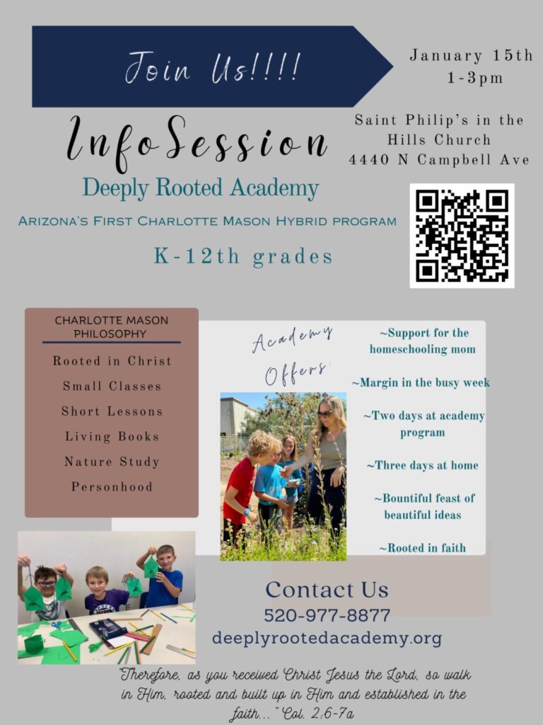 Deeply Rooted Academy is opening a campus at Saint Philip’s. This Charlotte-Mason based homeschool co-op will offer two full days on Mondays and Wednesdays throughout the school year at Saint Philip’s. To learn more, click here.
