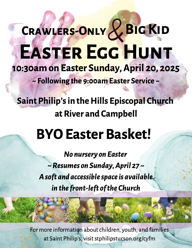 Saint Philip’s will host an Easter Egg Hunt at 10:15am on Easter Sunday, April 20.
