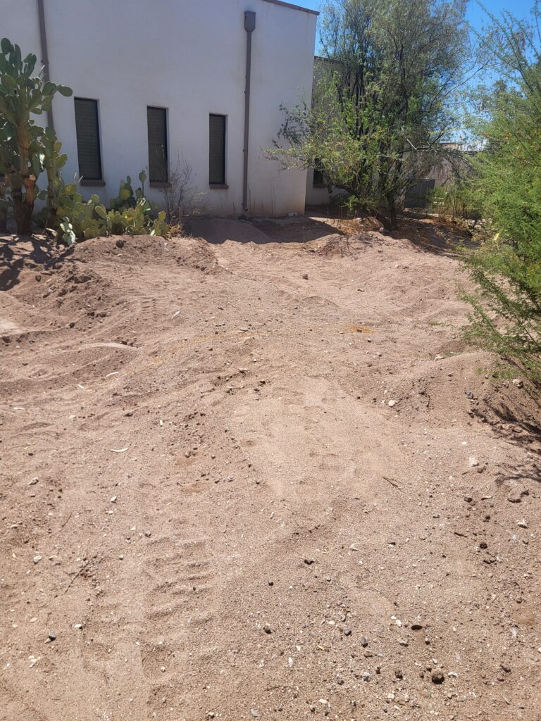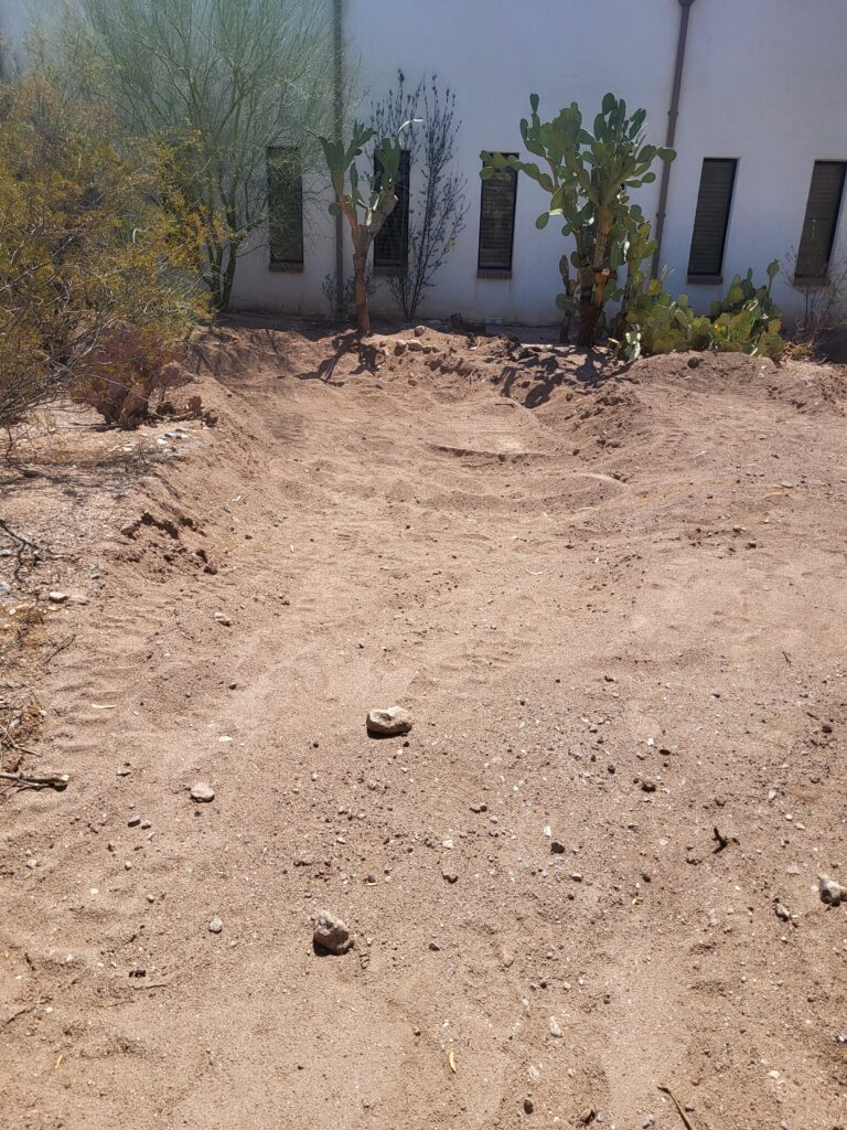 The dirt pulled from the basins was used to create berms to contain and direct the water away from the wall where the Great Window is. We also created channels to take any overflow from the upper basin to the lower basin and from the lower basin out to Campbell Avenue.