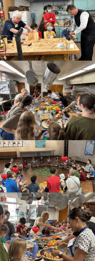 - Each day the three age groups rotated through three sessions adjusted for their age: Making lunch for the whole gathered community, preparing songs and a skit for the final day focused on the story of Joseph, the Dreamer, and related crafts.