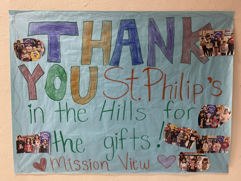 The students at Mission View Elementary showed their gratitude by creating a bright banner to thank everyone who donated gifts during Christmas.