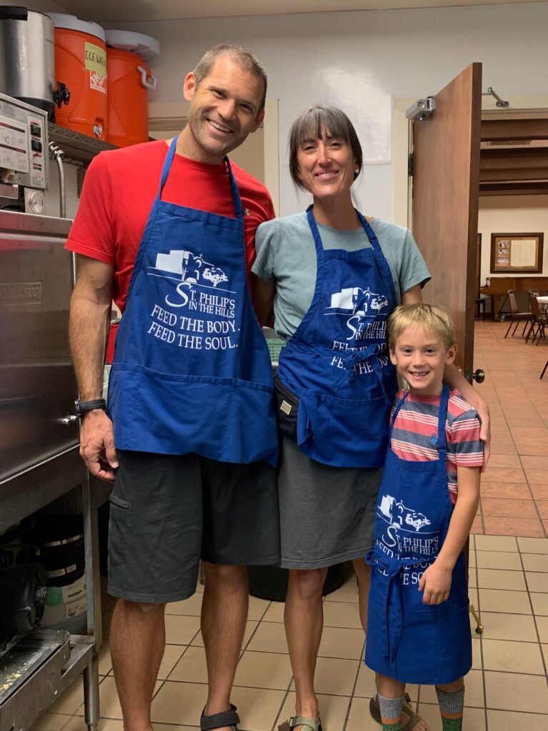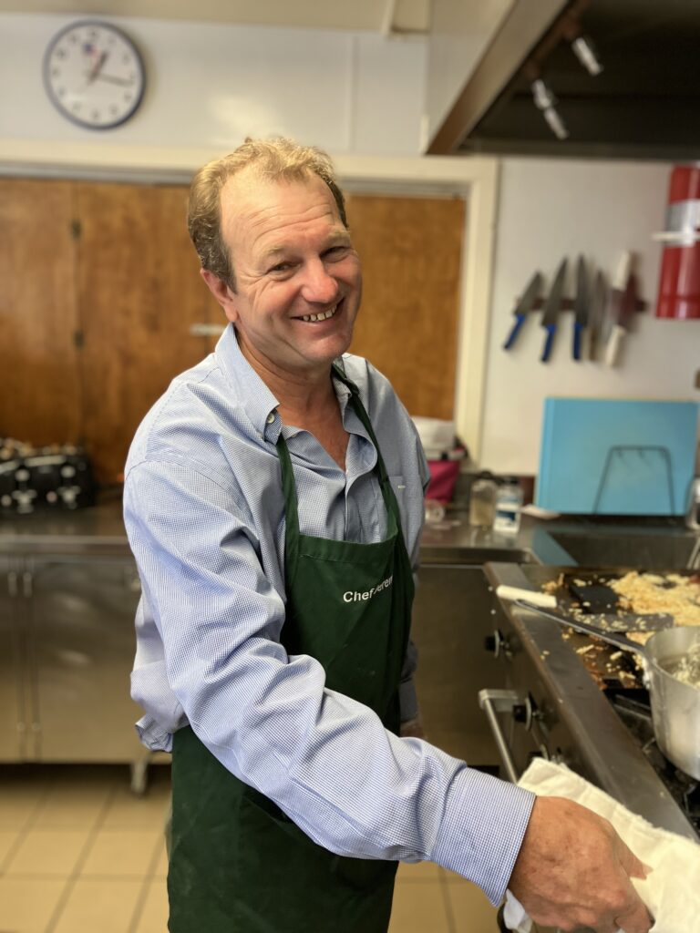 On Saturdays, the shopping and prep team went to work: Jeremy Furrer, Roger and Jeannine Rainbolt, Richard and Renee Cliff. (Kudos to Richard who seemed to always get stuck chopping onions!)