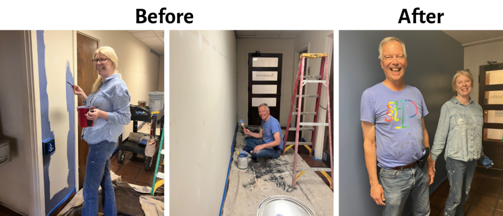 Brad and Jacqui Johns painted the restroom hallway off the breezeway.